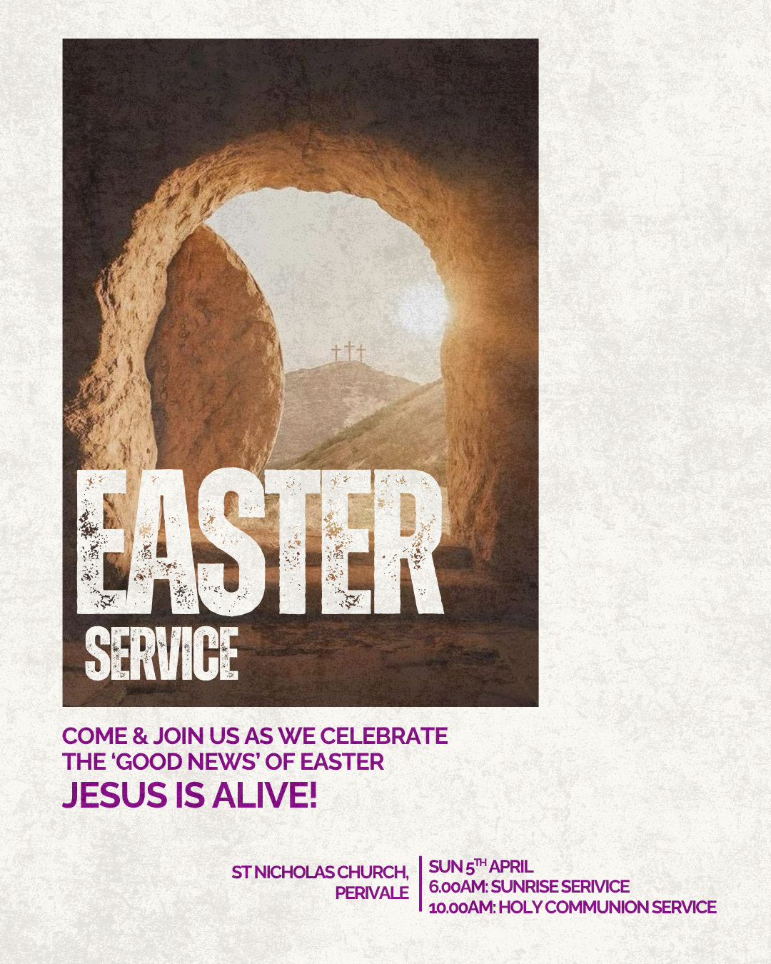 Join us this Easter Sunday as we celebrate the resurrection with worship, prayer, and community. All are welcome as we share in this day of hope and new beginnings.